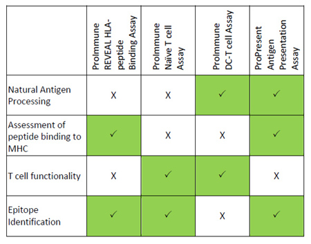 Integrated platforms can be used to mitigate immunogenicity risk and characterize immune responses during the drug design and development stages. ProImmune offers mutational activity mapping for optimal protein design, DC-T/T cell proliferation assays for biologic lead selection/optimization, a Mass Spectrometry assay for characterization of antigen presentation; HLA-peptide binding assays to characterize individual epitopes & undiluted whole blood cytokine storm assays.